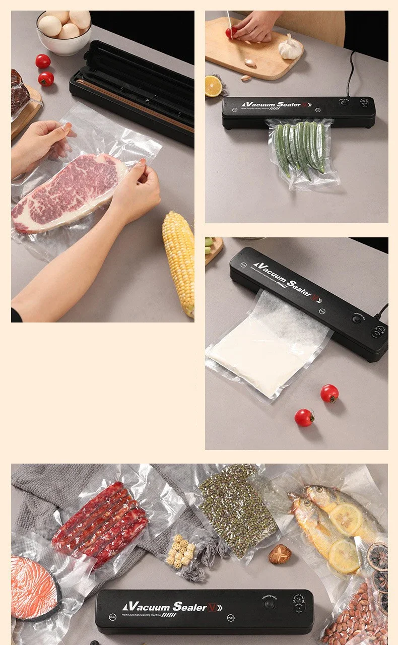 ¿Cansado de tirar comida y dinero a la basura? 🚮💸 Nuestro sellador es la solución definitiva. Extrae el aire por completo de las bolsas, creando un entorno hermético que frena el crecimiento de bacterias y evita la quemadura por congelador. Esto significa que tus alimentos mantendrán su textura, color, valor nutricional y, lo más importante, su increíble sabor, por mucho, mucho más tiempo.